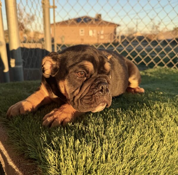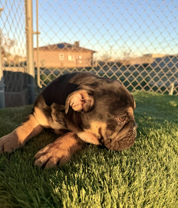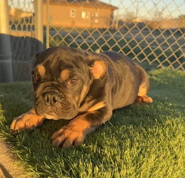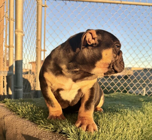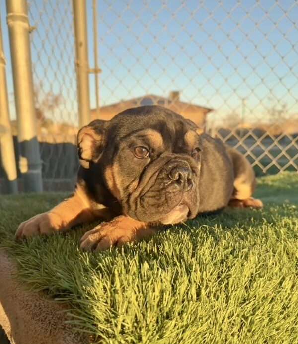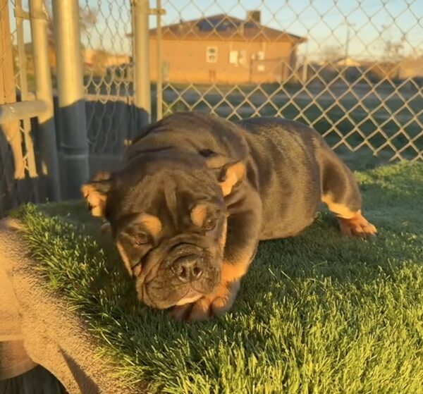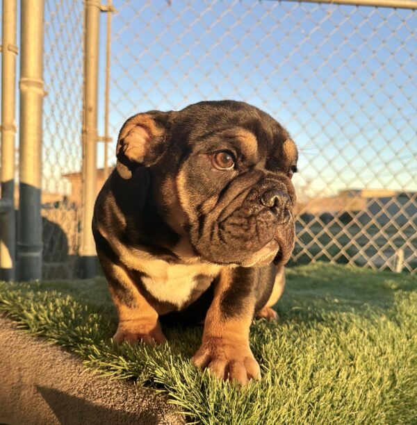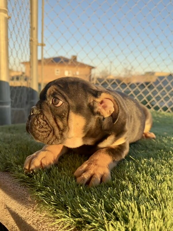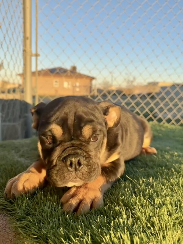 BIG PAPA is our amazing Black Tan Tri English Bulldog male. He has a nice, thick, amazing structure with thick paws and the cutest little mean face! Uzi is up-to-date on shots and deworming. He’s extremely healthy and is definitely the stud one amongst his siblings. His cute little face will totally make you fall in love. Big Papa is going to make one lucky family extremely happy! Shipping and delivery are available to all the United States at the expense of the new parents-to-be. Contact us to make Big Papa all yours