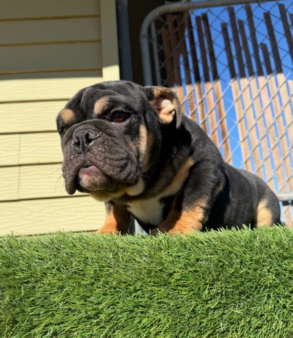 LIL UZI is our amazing Black Tan Tri English Bulldog male.
