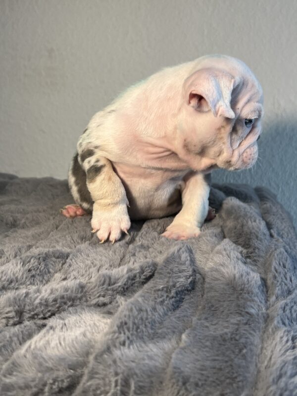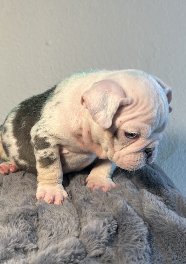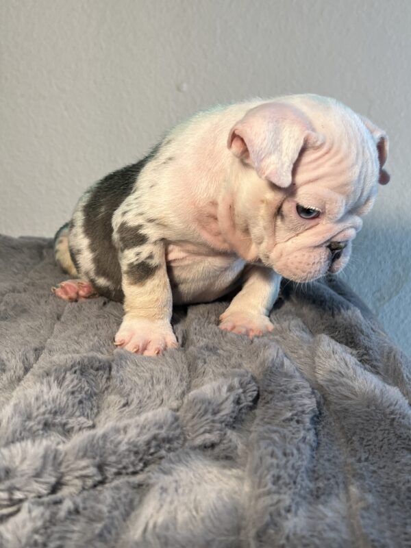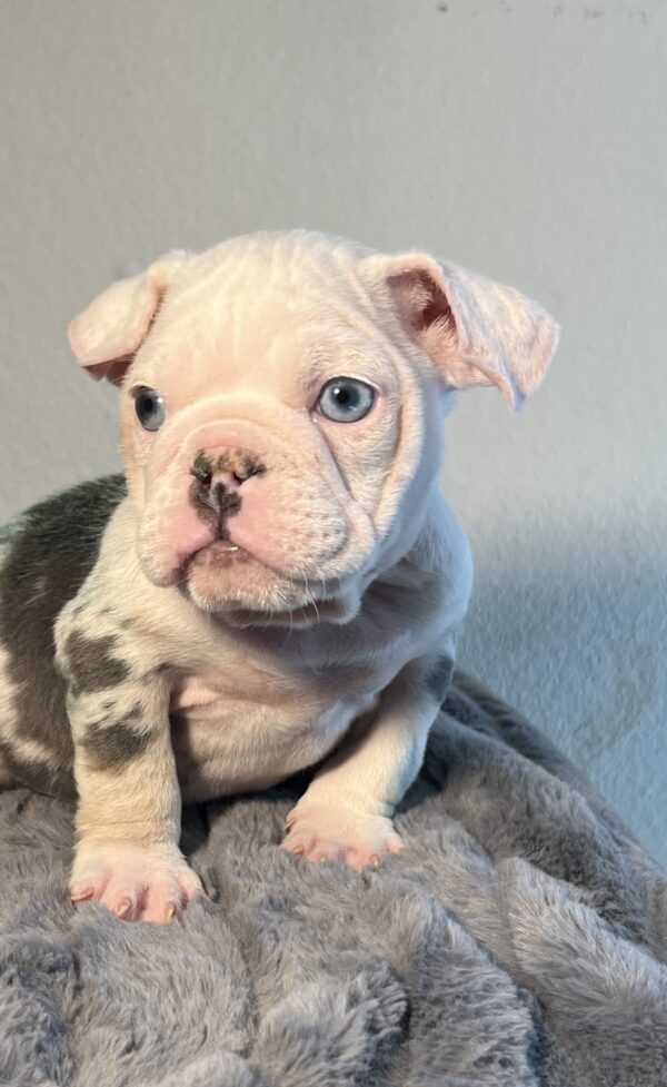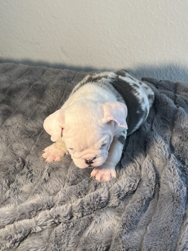 CASPER is our beautiful blue merle ENGLISH BULLDOG filled with tons of energy and spectacular colors. This boy is absolutely amazing with his shiny merle coat which is definitely one of the most popular colors in the English category. He’s currently up-to-date on his shots and dewormings. CASPER’s definitely a spark of LIFE, LOVE and GOOD VIBES! CASPER is going to command the room when he walks in. Grab him now!