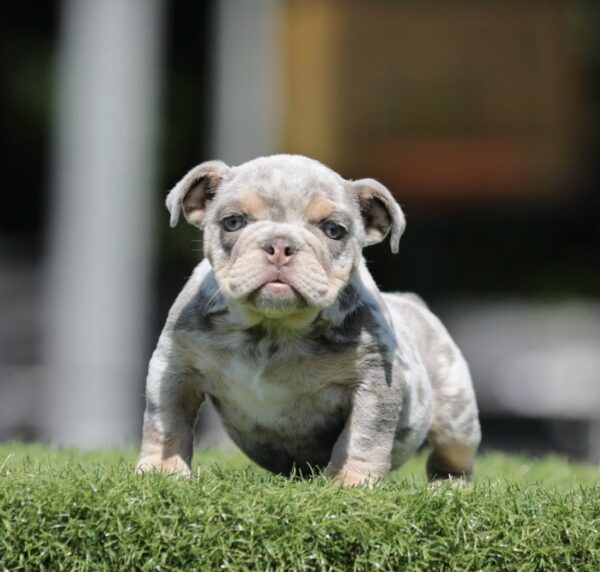 Welcome Iggy, our stunning LILAC MERLE MICRO English Bulldog puppy, located in beautiful Southern California. Iggy boasts a rare and exquisite lilac tan tri-color coat that’s sure to capture hearts. With her gentle and playful demeanor, Iggy is not only beautiful but also affectionate and loving.
