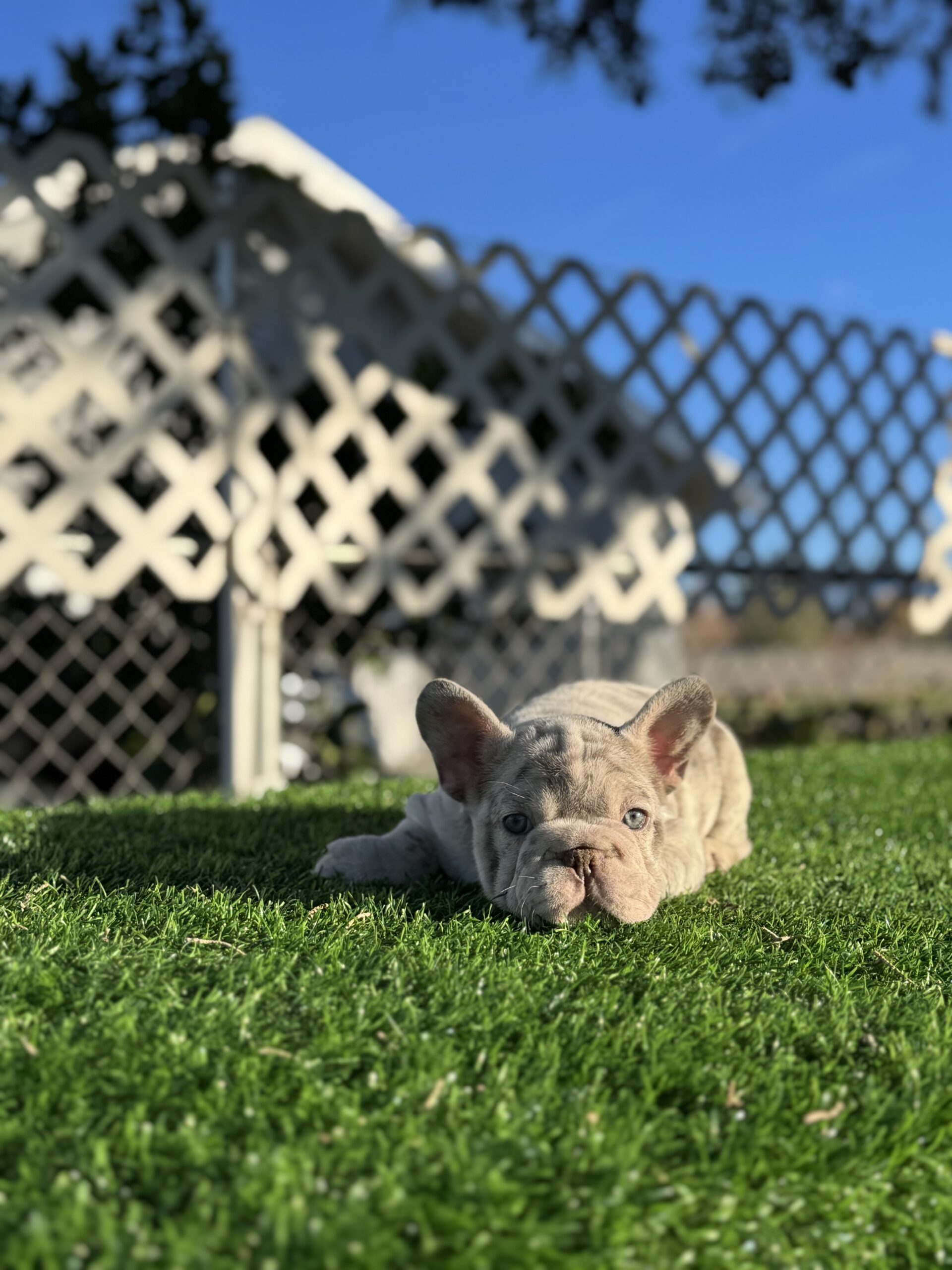 Introducing PINK, a captivating BIG ROPE Lilac Merle French Bulldog!