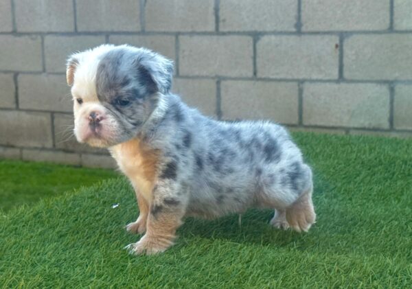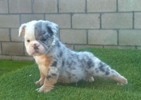 Introducing PLUTO, a captivating BLUE MERLE English Bulldog FLUFFY male with a striking smushed face and mesmerizing eyes. His unique coat pattern, combined with his affectionate and gentle personality, makes him a truly one-of-a-kind. Pluto’s calm demeanor and loving nature bring warmth and joy to everyone he meets, making him the perfect companion for any family. He’s ready to offer endless cuddles, loyalty, and love in his new home.