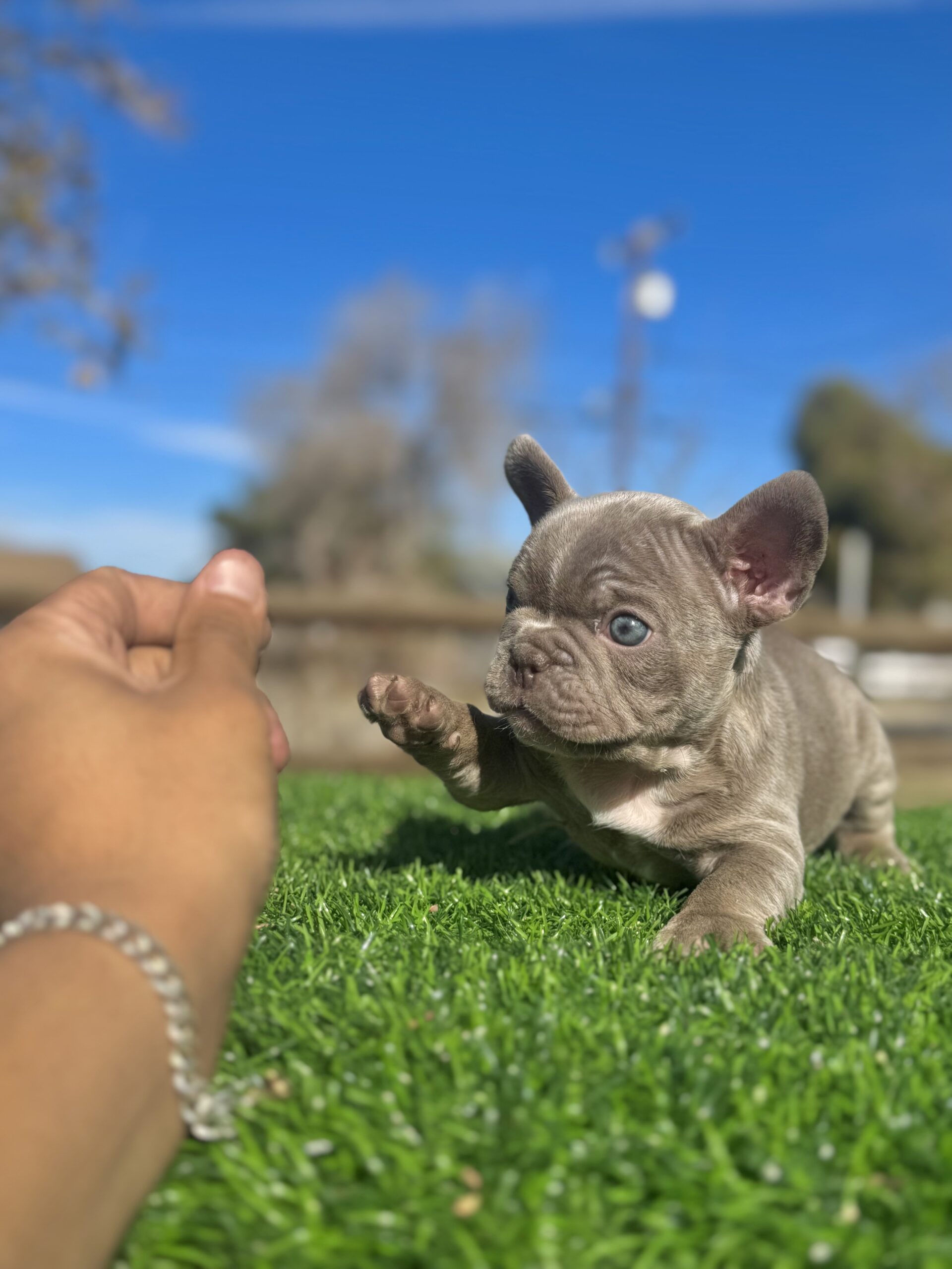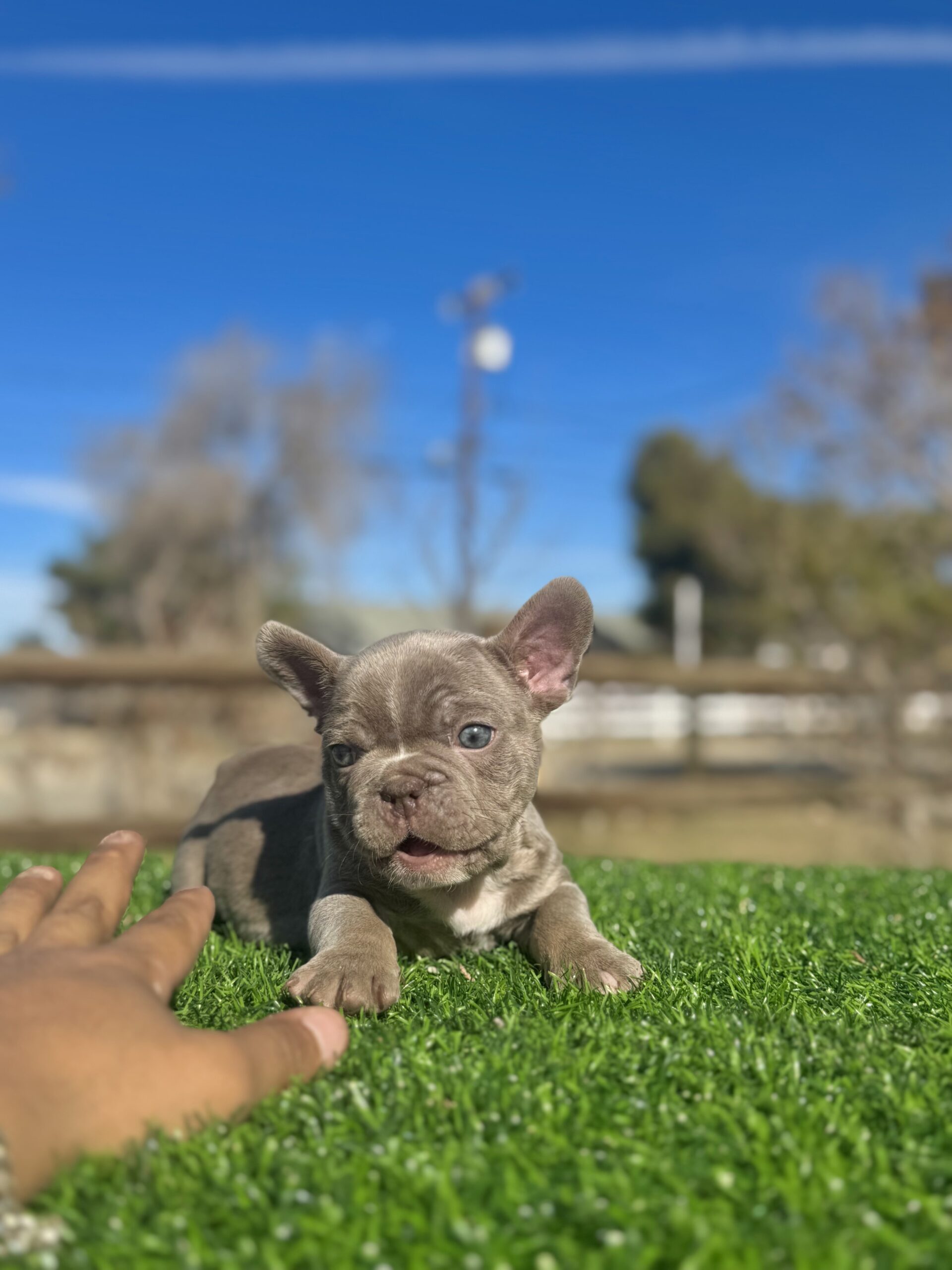 Introducing PLUTO, a captivating ISABELLA male French Bulldog with a striking face and mesmerizing eyes. His unique coat, combined with his affectionate and gentle personality, makes him truly one-of-a-kind. PLUTO’s calm demeanor and loving nature bring warmth and joy to everyone he meets, making him the perfect companion for any family. He’s ready to offer endless cuddles, loyalty, and love in his new home.