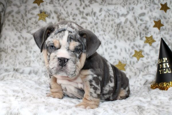 RIHANNA is our one of a kind Chocolate Tri Merle English Bulldog female with AMAZING tan points and colors!