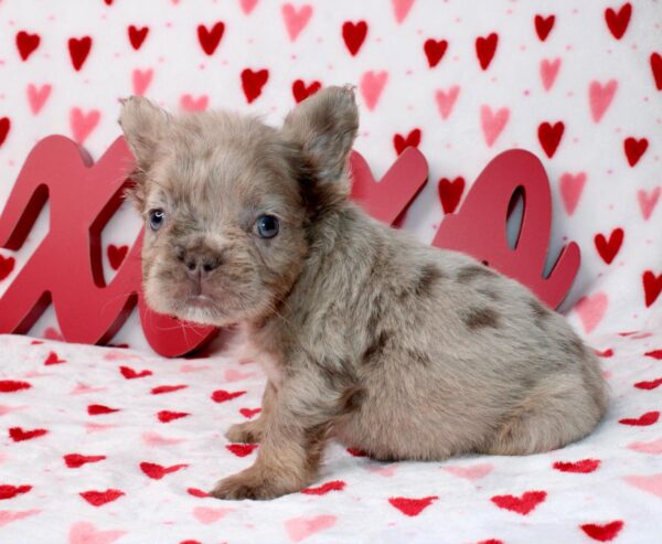 TEDDY, our handsome LILAC and TAN MERLE fluffy boy filled with tons of energy!